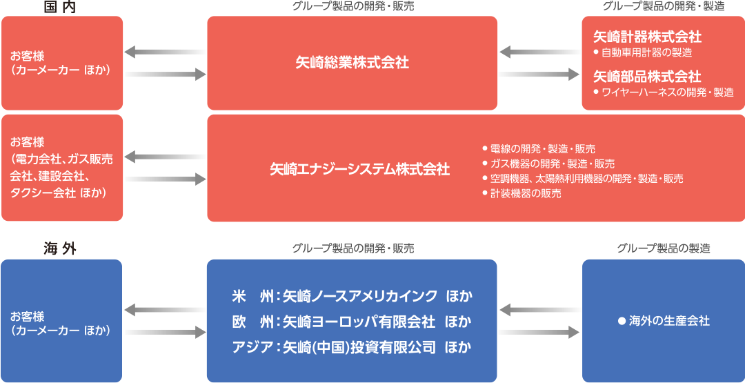 矢崎总业负责人事、财务业务等全面的管理工作,为整个集团的企业运营提供支持。 此外,还从事先进技术的研究开发和产品的营销。